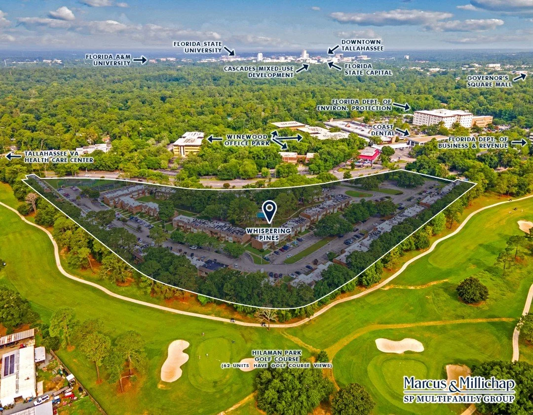 As the exclusive advisor, SP Multifamily Group of Marcus & Millichap is pleased to present Whispering Pines, a 120-unit multifamily opportunity. This residential community is located in Tallahassee, the state capital of Florida. It consists of low-density two-story buildings with one, two, three, and four-bedroom floorplans, It offers residents immediate access to nearby attractions and economic centers such as Downtown Tallahassee, Governor’s Square Mall, Florida State University, Florida A&M University, and many government office buildings. Furthermore, Whispering Pines is situated directly on Hilaman Golf Course, providing golf course views to 62 of the 120 units being offered. The buyer of Whispering Pines will benefit not only from the job growth Tallahassee is experiencing, but will also benefit from the ability to renovate the unit interiors, amenity package, and building exteriors. Upon completing renovations, the Buyer could realize 23% rent growth through a mark-to-market approach, as nearby properties are consistently achieving rental rates $200 to $800 above Whispering’s current average effective rents. Although this investment opportunity already offers a “going-in” cap rate above 6%, the Buyer will be positioned to achieve a pro forma cap rate of nearly 8% on an all-in basis, along with double-digit cash-on-cash returns.